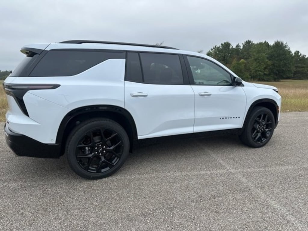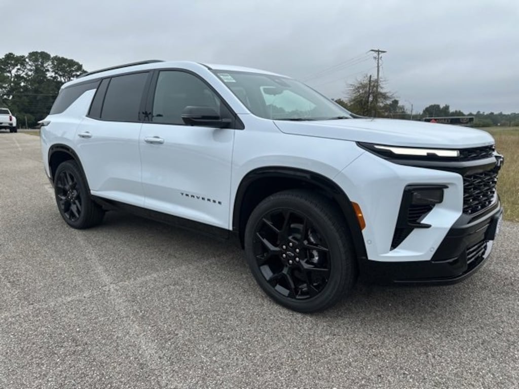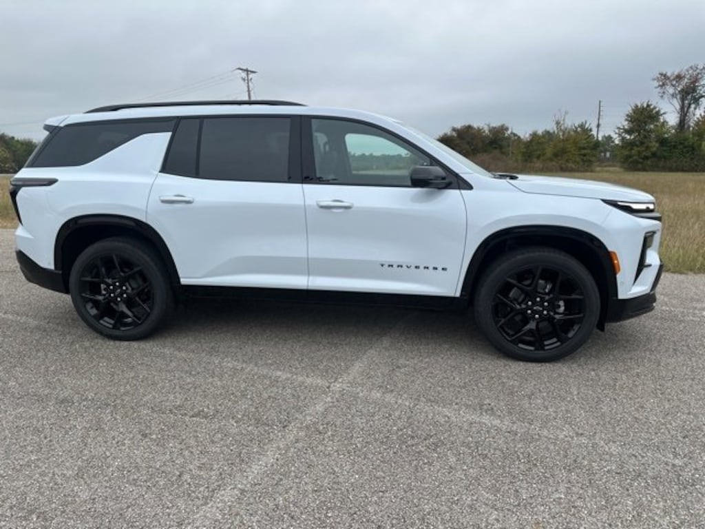 This 2026 Chevrolet Traverse RS in Polar White comes with the following features: 2.5L DOHC 8-Speed Automatic FWD Floor Liner Package (LPO) (1st & 2nd Row All-Weather Floor Liners (LPO), 3rd Row All-Weather Floor Liner (LPO), and Integrated Cargo Liner (LPO)), 12 Speakers, 3rd row seats: split-bench, 4-Wheel Disc Brakes, 6-Way Power Front Passenger Seat Adjuster, 8-Way Power Driver Seat Adjuster, ABS brakes, Air Conditioning, Alloy wheels, AM/FM radio: SiriusXM with 360L, Apple CarPlay/Android Auto, Auto High-beam Headlights, Auto tilt-away steering wheel, Auto-dimming door mirrors, Automatic temperature control, Bose Premium 12-Speaker Audio System Feature, Brake assist, Bumpers: body-color, Child-Seat-Sensing Airbag, Compass, Delay-off headlights, Driver 4-Way Power Lumbar Seat Adjuster, Driver door bin, Driver vanity mirror, Dual front impact airbags, Dual front side impact airbags, Electronic Stability Control, Emergency communication system: OnStar, Exterior Parking Camera Rear, Four wheel independent suspension, Front anti-roll bar, Front Bucket Seats, Front Center Armrest, Front dual zone A/C, Front Passenger 4-Way Power Lumbar Seat Adjuster, Front reading lights, Fully automatic headlights, Garage door transmitter, Heated door mirrors, Heated Driver & Front Passenger Seats, Heated front seats, Heated rear seats, Heated steering wheel, Illuminated entry, Low tire pressure warning, Memory seat, Navigation System, Occupant sensing airbag, Outside temperature display, Overhead airbag, Overhead console, Panic alarm, Passenger door bin, Passenger vanity mirror, Perforated Leather-Appointed Seat Trim, Power door mirrors, Power driver seat, Power Dual Glass Panoramic Sliding Sunroof, Power Liftgate, Power passenger seat, Power steering, Power windows, Radio data system, Radio: Audio System w/17.7 Diagonal Display, Rain sensing wipers, Rear air conditioning, Rear anti-roll bar, Rear reading lights, Rear window defroster, Rear window wiper, Remote keyless entry, RS Black Nameplate Kit (LPO), Security system, SiriusXM w/360L Trial Subscription, Speed control, Speed-sensing steering, Spoiler, Sport steering wheel, Steering wheel memory, Steering wheel mounted audio controls, Tachometer, Telescoping steering wheel, Tilt steering wheel, Traction control, Trip computer, Turn signal indicator mirrors, Variably intermittent wipers, Ventilated Driver & Front Passenger Seats, Ventilated front seats, Voltmeter, and Wheels: 22 High Gloss Black Painted Aluminum.