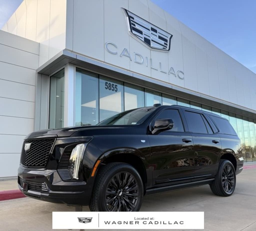 Recent Arrival! This 2025 Cadillac Escalade Sport Onyx Package in Black Raven comes with the following features: 6.2L V8 10-Speed Automatic 4WD **Onyx Package**, Bought Here Traded Here!, **CARFAX 1 OWNER**, and **AWD** 4WD and Whisper Beige w/Jet Black Accents w/Leather Seating Surfaces with Precision Perforated Inserts 3rd Row All-Weather Floor Liner Package, Floor Liner Package (Integrated Cargo Liner and Premium All-Weather Floor Liners), Onyx Package (Black Illuminated Cadillac Emblem, Gloss Black Escalade Nameplate, and Puddle Lamps with Cadillac Crest), Preferred Equipment Group 1SC (2-Speed Active Transfer Case, AKG Studio 19-Speaker Audio System, Blind Zone Steering Assist with Trailering, Door Lock and Latch Shields, Electronic Limited-Slip Differential, Glass Breakage Sensor, Heated and Ventilated Driver and Front Passenger Seats, Hitch Guidance with Hitch View, Illuminating Front and Rear Sill Plates, Integrated Trailer Brake Controller, Magnetic Ride Control Suspension, Power Panoramic Tilt-Sliding Sunroof, Reconfigurable Full-Color Head-Up Display, Running Board Assist Steps, Smart Trailer Integration Indicator, Theft-Deterrent Alarm System, Trailering App, Trailering Assist Guidelines, Vehicle Inclination Sensor, Vehicle Interior Movement Sensor, Wheel Locks, and Wheels: 22 6-Spoke Polished Finish Alloy), 4WD, Whisper Beige w/Jet Black Accents w/Leather Seating Surfaces with Precision Perforated Inserts, 19 Speakers, 2-Presets Memory For Driver Seat Adjuster, 22 Forged Multi-Spoke Alloy Wheels, 3.23 Axle Ratio, 3rd row seats: split-bench, 4-Way Power Driver Lumbar Seat Adjuster, 4-Way Power Front Passenger Lumbar Seat Adjuster, 4-Wheel Disc Brakes, 8-Way Power Driver Seat Adjuster, 8-Way Power Front Passenger Seat Adjuster, ABS brakes, Adaptive suspension, Air Conditioning, Alloy wheels, AM/FM radio: SiriusXM with 360L, Apple CarPlay/Android Auto, Audio memory, Auto High-beam Headlights, Auto tilt-away steering wheel, Auto-dimming door mirrors, Auto-dimming Rear-View mirror, Automatic temperature control, Brake assist, Bumpers: body-color, Compass, Delay-off headlights, Driver door bin, Driver vanity mirror, Dual front impact airbags, Dual front side impact airbags, Electronic Stability Control, Emergency communication system: OnStar Services capable, Exterior Parking Camera Rear, Four wheel independent suspension, Front anti-roll bar, Front Bucket Seats, Front Center Armrest w/Storage, Front dual zone A/C, Front License Plate Bracket, Front reading lights, Fully automatic headlights, Garage door transmitter, Heads-Up Display, Heated door mirrors, Heated Driver and Front Passenger Seats, Heated front seats, Heated rear seats, Heated steering wheel, Illuminated entry, Knee airbag, Lane Departure Warning System, Leather Seating Surfaces with Precision Perforated Inserts, Low tire pressure warning, Memory seat, Navigation System, Occupant sensing airbag, Outside temperature display, Overhead airbag, Overhead console, Panic alarm, Passenger door bin, Passenger vanity mirror, Power door mirrors, Power driver seat, Power Liftgate, Power moonroof, Power passenger seat, Power steering, Power windows, Power-Retractable Assist Steps, Radio data system, Radio: Infotainment Experience, Rain sensing wipers, Rear air conditioning, Rear anti-roll bar, Rear reading lights, Rear window defroster, Rear window wiper, Remote keyless entry, Security system, SiriusXM with 360L Trial Subscription, Speed control, Split folding rear seat, Spoiler, Steering wheel memory, Steering wheel mounted audio controls, Tachometer, Telescoping steering wheel, Tilt steering wheel, Traction control, Trip computer, Turn signal indicator mirrors, Variably intermittent wipers, Ventilated front seats, Voltmeter, Wheels: 22 Interim, and Wireless Apple CarPlay/Wireless Android Auto.