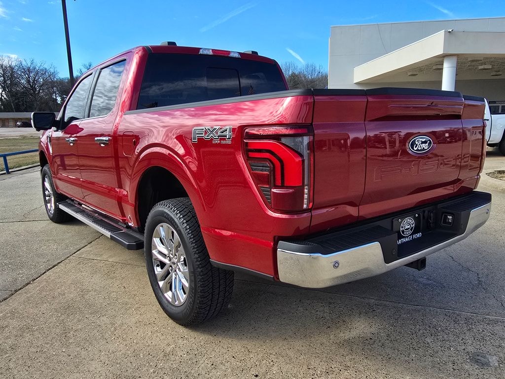 This 2025 Ford F-150 Lariat in Red Metallic comes with the following features: 3.5L V6 EcoBoost 10-Speed Automatic 4WD 4WD Bed Utility Package (4 Pickup Box Tie-Down Plates, LED Box Lighting, Power Tailgate, and Pro Access Tailgate), Equipment Group 502A High (2nd Row Heated Seats, Ambient Lighting - Ice Blue Color Only, Heads-Up Display, Illuminated Driver & Passenger Visors, Power-Sliding Rear Window, Radio: B&O Unleashed Sound System by Bang & Olufsen, and Wheels: 20" Chrome-Like PVD), FX4 Off-Road Package (4x4 FX4 Off-Road Bodyside Decal, Hill Descent Control, Monotube Rear Shocks, Off-Road Tuned Front Shock Absorbers, Rock Crawl Mode, and Tray Style Floor Liner w/o Carpet Mats), Mobile Office Package (Console Worksurface, Partitioned Lockable Rear Storage, and Wireless Charging), Tow/Haul Package, 4WD, 4-Wheel Disc Brakes, 6" Extended Running Boards, 8 Speakers, ABS brakes, ActiveX Trimmed Bucket Seats, Adjustable pedals, Air Conditioning, Alloy wheels, AM/FM radio: SiriusXM with 360L, Auto High-beam Headlights, Auto-dimming door mirrors, Auto-dimming Rear-View mirror, Automatic temperature control, Brake assist, Bumpers: chrome, Chrome wheels, Compass, Delay-off headlights, Driver door bin, Driver vanity mirror, Dual front impact airbags, Dual front side impact airbags, Electronic Stability Control, Emergency communication system: SYNC 4 911 Assist, Front anti-roll bar, Front Bucket Seats, Front Center Armrest, Front dual zone A/C, Front fog lights, Front License Plate Bracket, Front reading lights, Front wheel independent suspension, Fully automatic headlights, Garage door transmitter, Heated door mirrors, Heated front seats, Heated steering wheel, Illuminated entry, Internet access capable: FordPass Connect 5G, Low tire pressure warning, Memory seat, Navigation system: Connected Navigation, Occupant sensing airbag, Outside temperature display, Overhead airbag, Overhead console, Panic alarm, Passenger door bin, Passenger vanity mirror, Pedal memory, Power door mirrors, Power driver seat, Power passenger seat, Power steering, Power windows, Radio data system, Radio: B&O Sound System by Bang & Olufsen, Rain sensing wipers, Rear reading lights, Rear seat center armrest, Rear step bumper, Rear window defroster, Remote keyless entry, Security system, Speed control, Split folding rear seat, Steering wheel mounted audio controls, SYNC 4 w/Enhanced Voice Recognition, Tachometer, Telescoping steering wheel, Tilt steering wheel, Traction control, Trip computer, Turn signal indicator mirrors, Twin Panel Moonroof, Variably intermittent wipers, Ventilated front seats, Voltmeter, and Wheels: 18" Chrome-Like PVD.