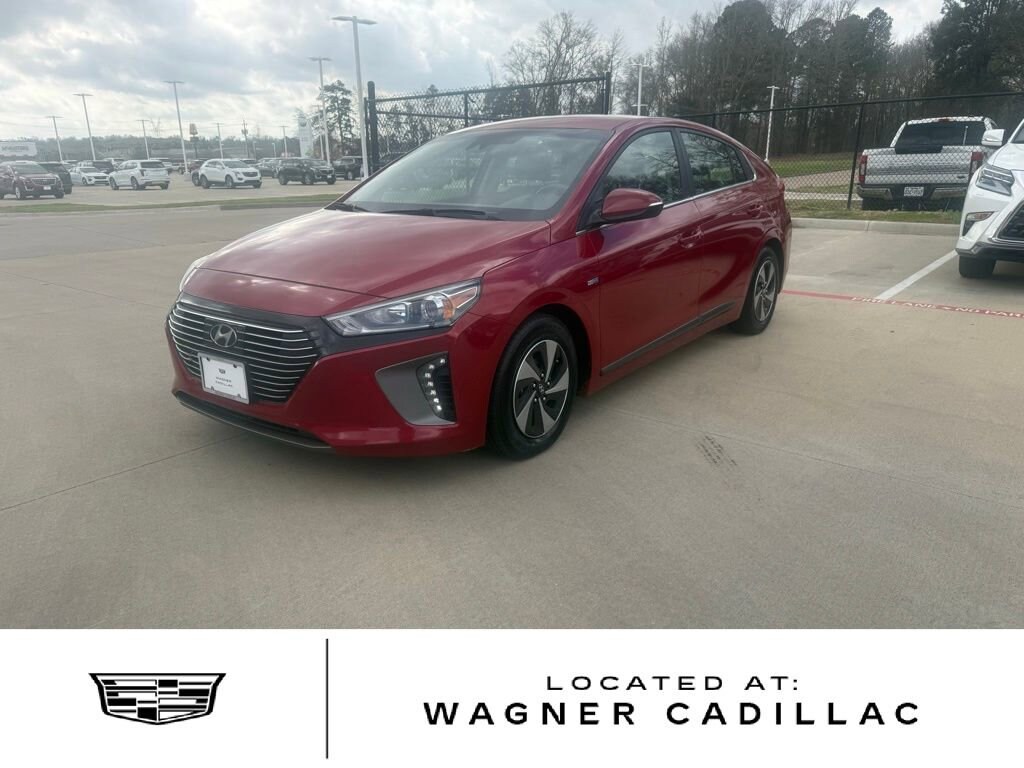 Recent Arrival! This 2019 Hyundai Ioniq Hybrid SEL in Scarlet Red Pearl comes with the following features: 1.6L I4 DGI Hybrid DOHC 16V LEV3-SULEV30 6-Speed EcoShift Dual Clutch FWD 1.6L I4 DGI Hybrid DOHC 16V LEV3-SULEV30 Option Group 01, 1.6L I4 DGI Hybrid DOHC 16V LEV3-SULEV30, 4-Wheel Disc Brakes, 6 Speakers, ABS brakes, Air Conditioning, Alloy wheels, AM/FM radio: SiriusXM, Apple CarPlay & Android Auto, Automatic temperature control, Bodyside moldings, Brake assist, Bumpers: body-color, Cargo Net, Carpeted Floor Mats, Delay-off headlights, Driver door bin, Driver vanity mirror, Dual front impact airbags, Dual front side impact airbags, Electronic Stability Control, Exterior Parking Camera Rear, First Aid Kit, Four wheel independent suspension, Front anti-roll bar, Front Bucket Seats, Front Center Armrest, Front dual zone A/C, Front reading lights, Fully automatic headlights, Heated door mirrors, Heated Front Bucket Seats, Heated front seats, Illuminated entry, Knee airbag, Leather Shift Knob, Low tire pressure warning, Occupant sensing airbag, Outside temperature display, Overhead airbag, Overhead console, Panic alarm, Passenger door bin, Passenger vanity mirror, Power door mirrors, Power driver seat, Power steering, Power windows, Premium Cloth Seating Surfaces, Radio: AM/FM/MP3 Audio System, Rear seat center armrest, Rear window defroster, Remote keyless entry, Security system, Speed control, Speed-sensing steering, Split folding rear seat, Spoiler, Steering wheel mounted audio controls, Tachometer, Telescoping steering wheel, Tilt steering wheel, Traction control, Trip computer, Turn signal indicator mirrors, Variably intermittent wipers, and Wheels: 15 x 6.0J Eco-Spoke Alum Aly (SEL Design)55/54 City/Highway MPG