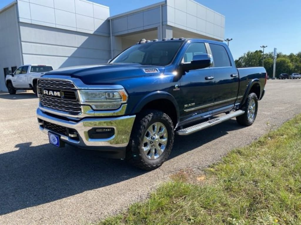 This 2020 Ram 2500 Limited in Patriot Blue Pearlcoat comes with the following features: Cummins 6.7L I6 Turbodiesel 6-Speed Automatic 4WD ***LOCAL TRADE**, **4WD**, **4x4**, **ADAPTIVE CRUISE**, **ANDROID AUTO & APPLE CARPLAY**, **AUTO HEADLIGHTS**, **BLIND SPOT ALERT SYSTEM**, **BLUETOOTH HANDS FREE CALLING**, **DIESEL**, **FRONT USB CHARGING PORTS**, **HEATED/COOLED SEATS**, **LANE DEPARTURE WARNING**, **LEATHER**, **LED HEADLIGHTS**, **NON SMOKER**, **REAR PARK ASSIST**, **REAR TRAFFIC ALERT**, **REAR VIEW CAMERA**, **REMOTE START**, **RUNNING BOARDS**, **SPRAY IN BEDLINER**, **TOW PKG**, and **Low Mileage** Limited Level 1 Equipment Group (17 Speaker harman kardon Premium Sound, Adaptive Cruise Control w/Stop, Adaptive Steering System, CTR Stop Lamp w/Cargo View Camera, Full Speed Forward Collision Warning Plus, Lane Keep Assist, Surround View Camera System, and Trailer Reverse Guidance), Protection Group, Quick Order Package 2HM Limited, 1-Year SiriusXM Guardian Trial, 10 Speakers, 12 Touchscreen Display, 220 Amp Alternator, 3.73 Axle Ratio, 4-Wheel Disc Brakes, ABS brakes, Active Noise Control System, Adjustable pedals, Air Conditioning, Alloy wheels, AM/FM radio: SiriusXM with 360L, Anti-Spin Differential Rear Axle, Apple CarPlay, Apple CarPlay/Android Auto, Audio memory, Auto High-beam Headlights, Auto-dimming Rear-View mirror, Automatic temperature control, Bodyside moldings, Brake assist, Bumpers: chrome, Chrome Flat Wheel-to-Wheel Side Steps, Clearance Lamps, Compass, Delay-off headlights, Disassociated Touchscreen Display, Driver door bin, Driver vanity mirror, Dual front impact airbags, Dual front side impact airbags, Electronic Stability Control, Electronically Controlled Throttle, Emergency communication system: SiriusXM Guardian, Front anti-roll bar, Front Bucket Seats, Front Center Armrest w/Storage, Front dual zone A/C, Front fog lights, Front reading lights, Fully automatic headlights, Garage door transmitter, Genuine wood console insert, Genuine wood dashboard insert, Genuine wood door panel insert, Google Android Auto, GPS Antenna Input, GPS Navigation, HD Radio, Heated door mirrors, Heated front seats, Heated rear seats, Heated steering wheel, I/P Mounted Auxiliary Switches, Illuminated entry, Integrated Voice Command w/Bluetooth, Leather steering wheel, Limited Leather Bucket Seats, Low tire pressure warning, Memory seat, Navigation System, Occupant sensing airbag, Outside temperature display, Overhead airbag, Overhead console, Panic alarm, ParkView Rear Back-Up Camera, Passenger door bin, Passenger vanity mirror, Pedal memory, Pickup Box, Power door mirrors, Power driver seat, Power passenger seat, Power steering, Power Sunroof, Power windows, Radio data system, Radio: Uconnect 12.0 w/Navigation, Rain sensing wipers, RamBox Delete, Rear anti-roll bar, Rear reading lights, Rear seat center armrest, Rear step bumper, Rear window defroster, Remote keyless entry, Security system, SiriusXM Satellite Radio, SiriusXM Traffic Plus, SiriusXM Travel Link, SiriusXM w/360L, Speed control, Split folding rear seat, Steering wheel mounted audio controls, Tachometer, Tilt steering wheel, Tip Start, Traction control, Trip computer, Turn signal indicator mirrors, USB Host Flip, Variably intermittent wipers, Ventilated front seats, Voltmeter, and Wheels: 20 x 8.0 Satin Carbon w/Chrome Inserts.